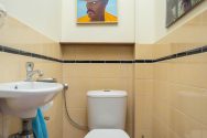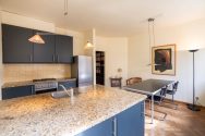 At the rear, you’ll find the kitchen, fitted with all necessary appliances and access to the first balcony. The kitchen is also equipped with awnings, providing pleasant light and cooling. There is ample space here to create a comfortable dining area.