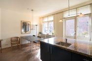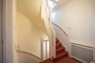 Via the private entrance at street level, you reach the first floor of the property by stairs. Upon entering, you step into a spacious hallway with access to a separate toilet and stairs leading to the sleeping quarters. At the front of the house, you will find the spacious and bright living room with large windows and a cozy fireplace.