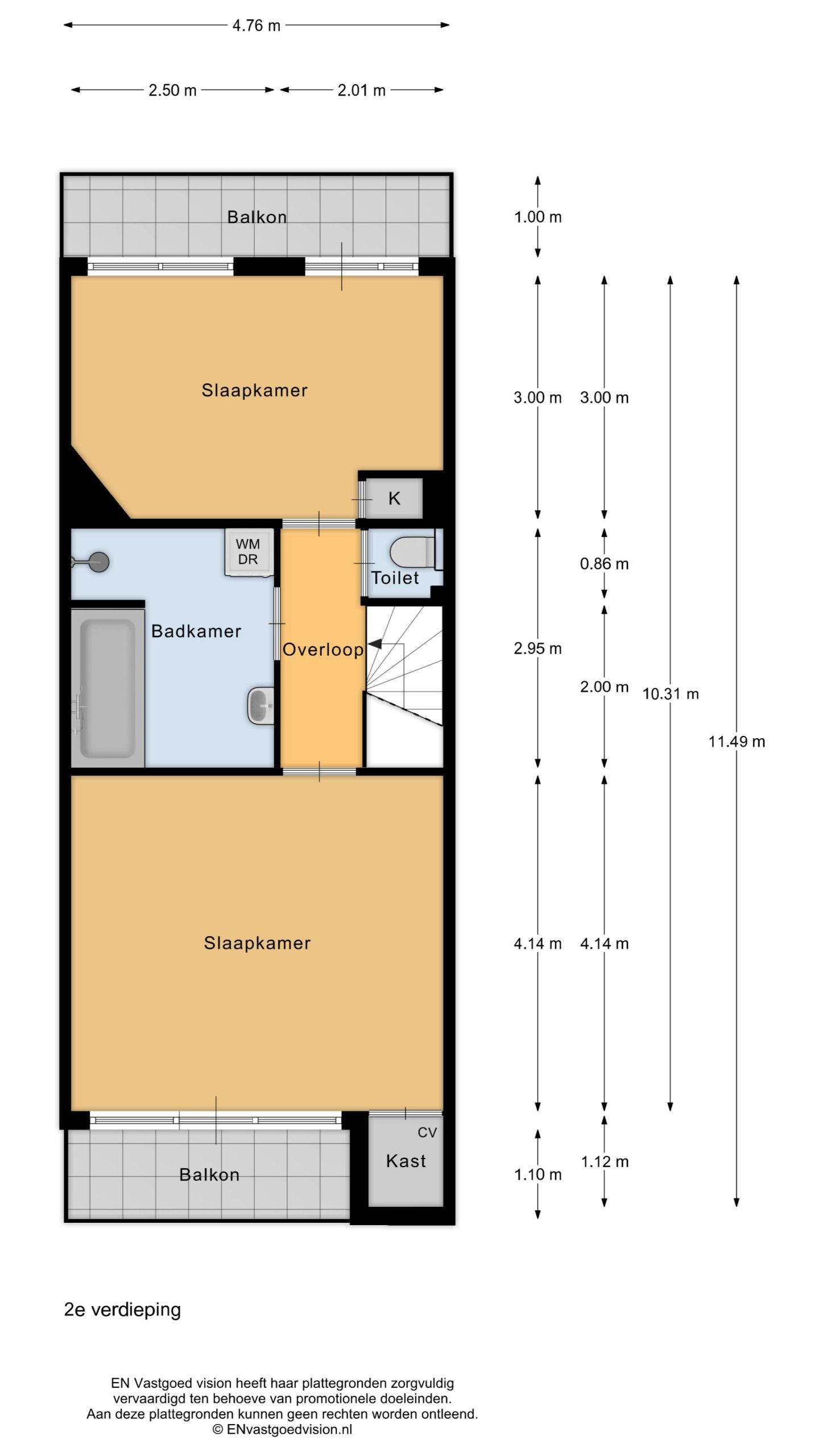 | Tweede verdieping | 2 Bedroom(s). Bathroom: 1 bathroom(s). Gang, Balkon, Toilet. Orientation: Zuid |