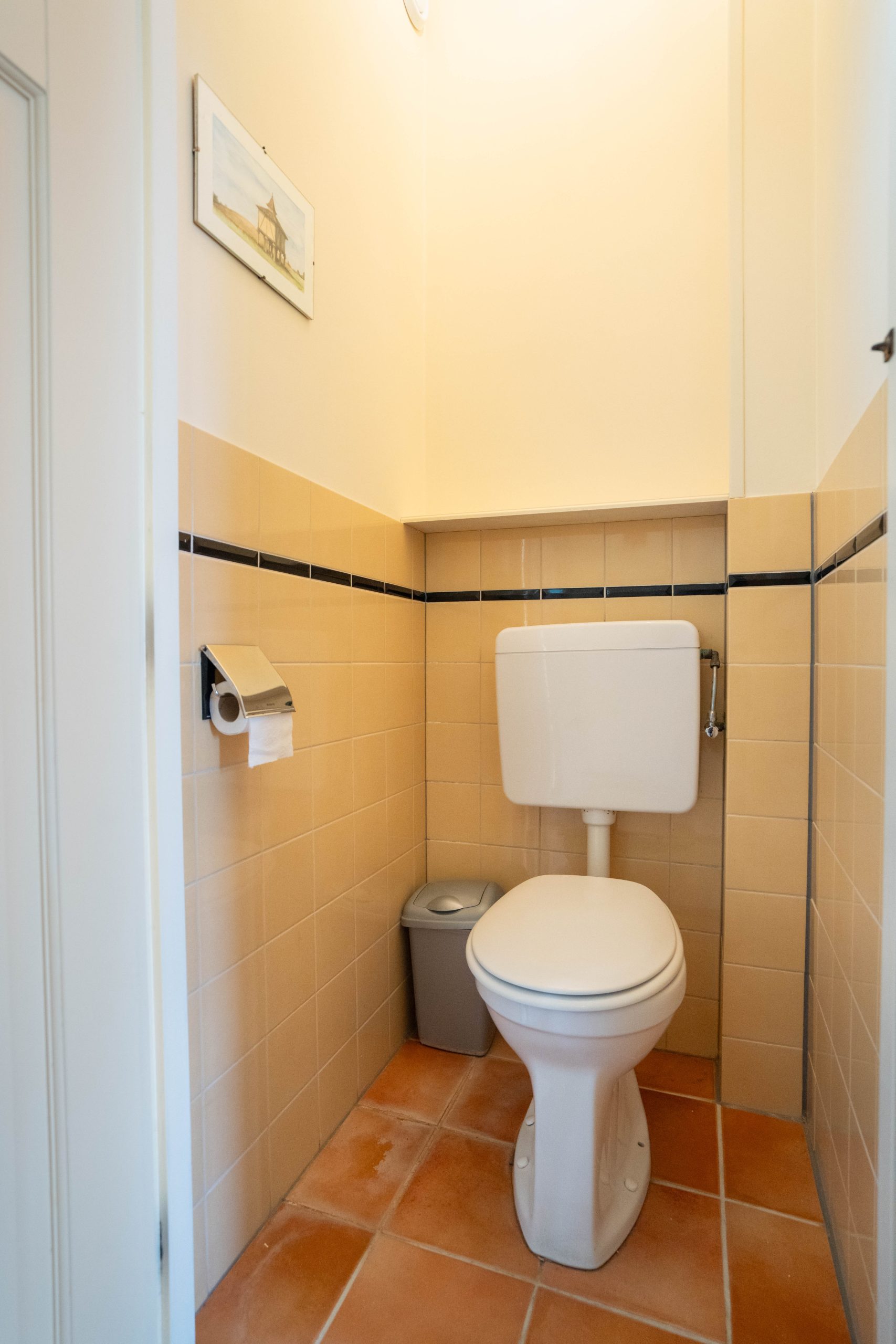 The centrally located bathroom is fitted with both a bathtub and a separate shower, a washbasin, and connections for a washing machine and dryer. This floor also has a second, separate toilet.