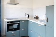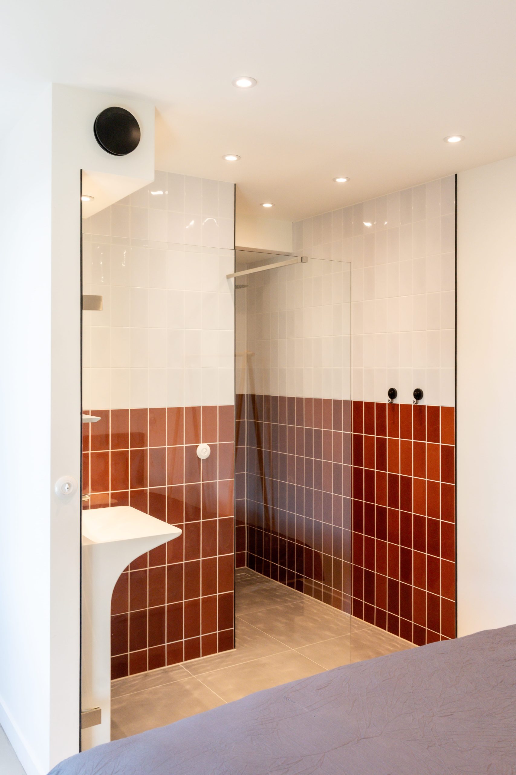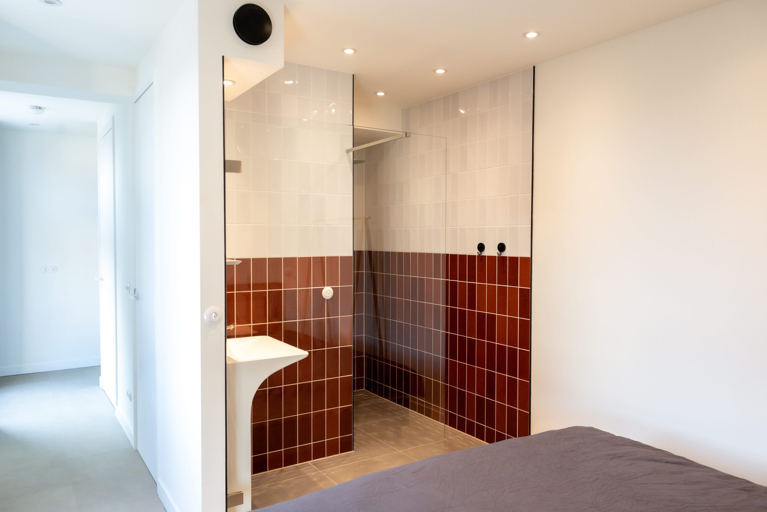 De foto’s betreft een appartement op 21L, die per direct beschikbaar is. De woning heeft een oppervlakte van 48,5m² en heeft een woonkamer met open keuken, slaapkamer en een badkamer met toilet. De woning bevindt zich op de eerste verdieping en de slaapkamer en badkamer is te bereiken met de trap naar de tweede verdieping.